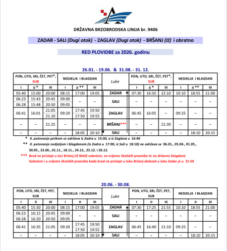 Dana 3. veljače katamaran kreće iz luke Ubli u 05:00 sati umjesto 06:00 sati, dok povratno iz Dubrovnika kreće u 14:00 sati umjesto u 13:00 sati.