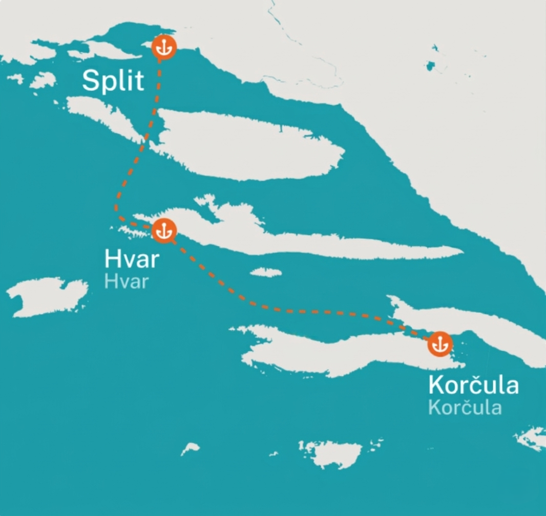 Dubrovnik - Korčula - Hvar - Milna - Split / Line No. 842